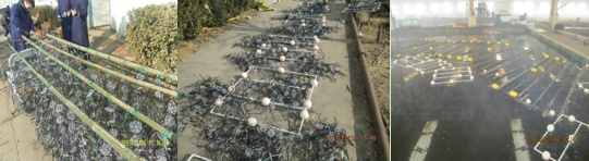 采用竹子浮島和PVC管浮島共用的形式,其中竹子浮島共用20個(gè),PVC管浮島共用25個(gè),共用2200束填料,10個(gè)環(huán)每束。